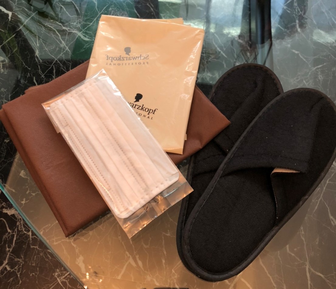 使い捨てスリッパ、使い捨てクロスの他、アルコール除菌、